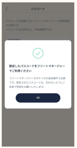 カチャカフリートマネージャーをご利用いただくには、カチャカアプリからパスコードを登録していただく必要があります。手順は以下をご確認ください。